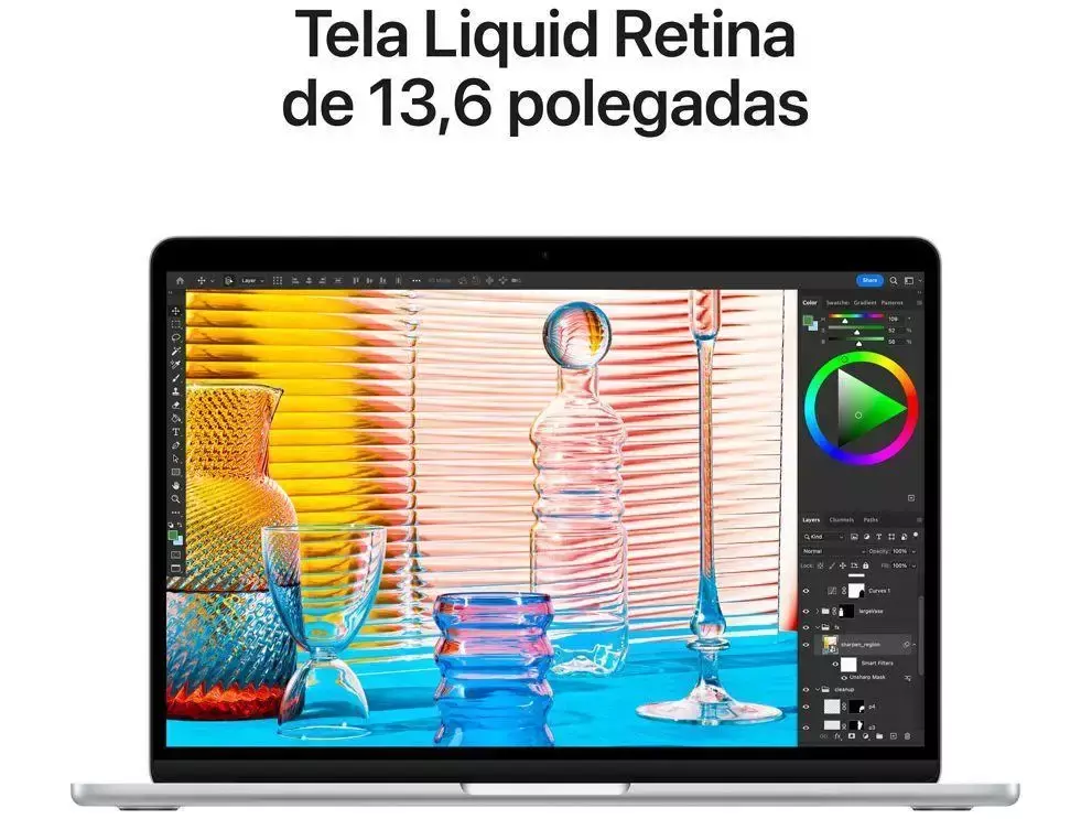 ✅ Tela Liquid Retina de 13,6”: cores mais vivas, brilho e detalhes incríveis para vídeos, fotos e design.